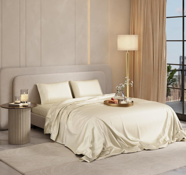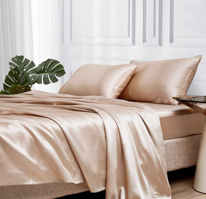 Disfruta de la suavidad inigualable de las sábanas saten de seda perfectas para tu cabello y piel. Son muy saludables porque no están tratadas con resina de formaldehído o cualquier acabad de tela química tóxica. El juego de cama de satén sedoso y saludable ayuda a proteger tu piel y reducir las arrugas faciales. Y la tela de satén proporciona una superficie lisa y evita que tu cabello se enrede o se enganche. Despierta de nuestras sábanas todos los días y te sentirás más enérgico y saludable son suaves, refrescantes ayudándote a deslizarte en un sueño cómodo cada noche. Date un capricho con muchas noches maravillosas.