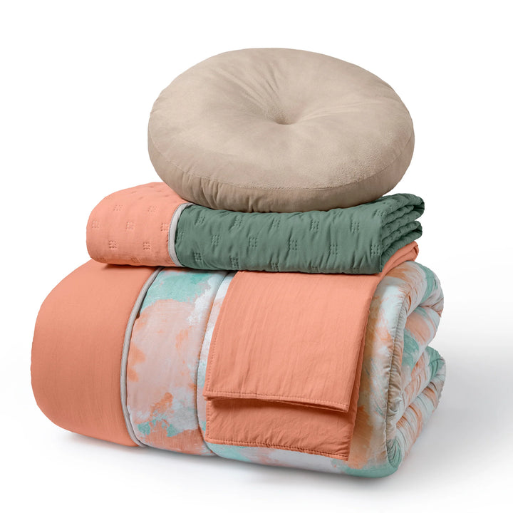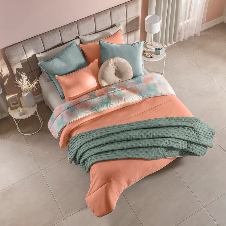 Combo Edredón doble faz acuarela + quilt doble faz + fundas + cojin