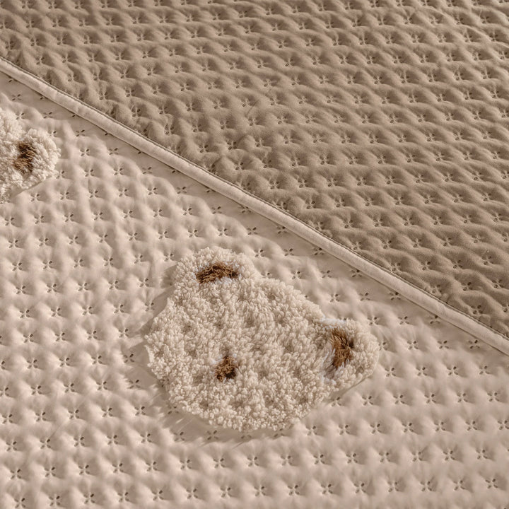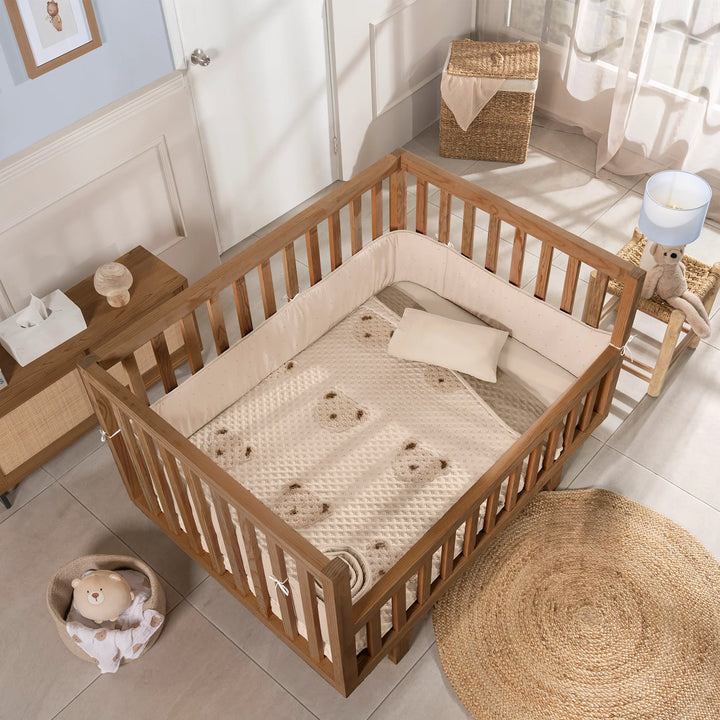 Edredón Voga con encantadores ositos en tonos suaves, ideal para mantener a tu pequeño abrigado y cómodo. Con su textura en realce brindando dulzura y calidez en cada sueño.