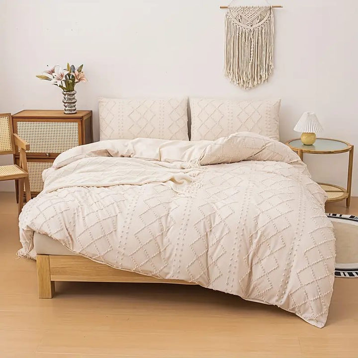 Incluye: Edredón, 2 fundas de almohada. Excepto cama sencilla que incluye 1 funda de almohada.
