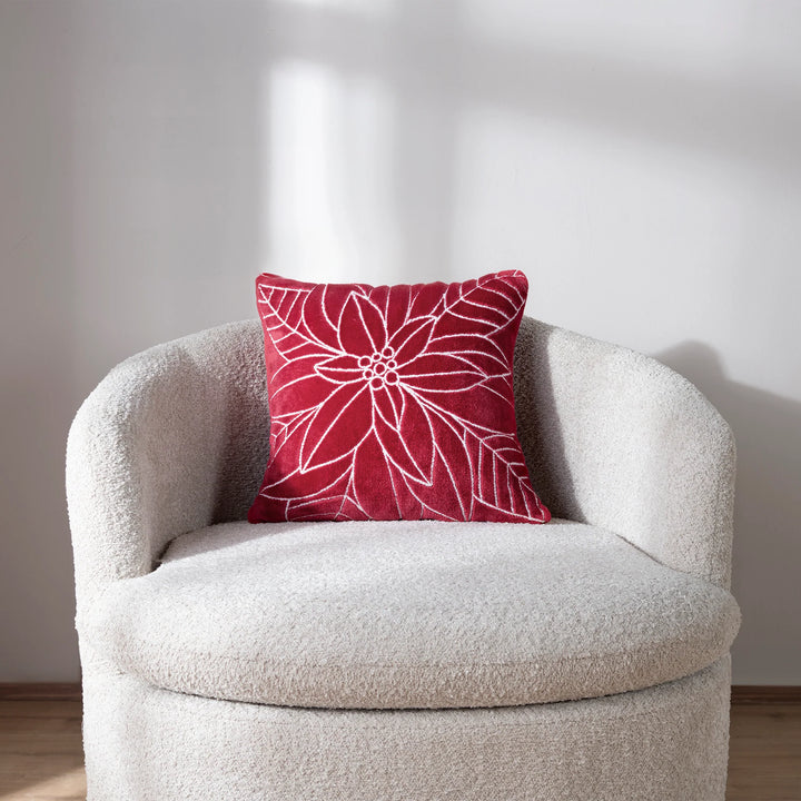 Funda de cojín cuadrada con diseño navideño y especialidad en bordado, perfecto para dar un toque elegante en fechas decembrinas.