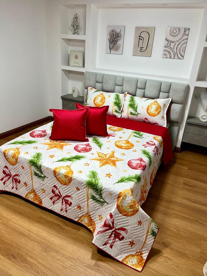 Quilt estrella navideña + fundas almohada + fundas de cojín