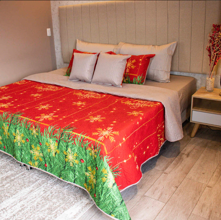 Quilt golden Navidad + fundas almohada + fundas de cojín