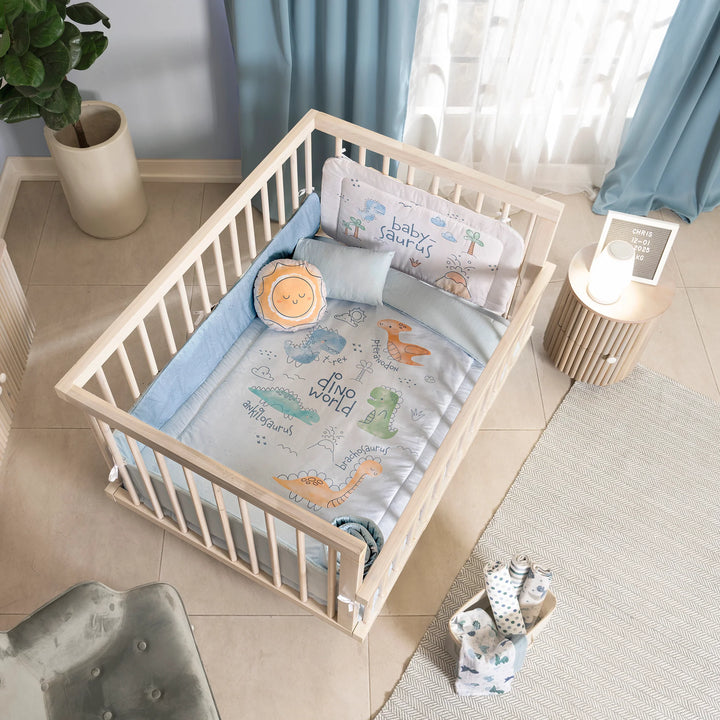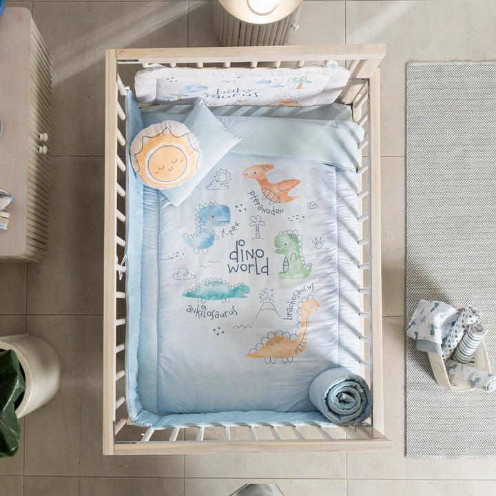 Mantén a tu bebé abrigado y cómodo con nuestro Edredón Baby T-Rex. Hecho de materiales suaves que ofrece un toque tierno y cálido para una noche de descanso perfecta. Ideal para la cuna de tu bebé.